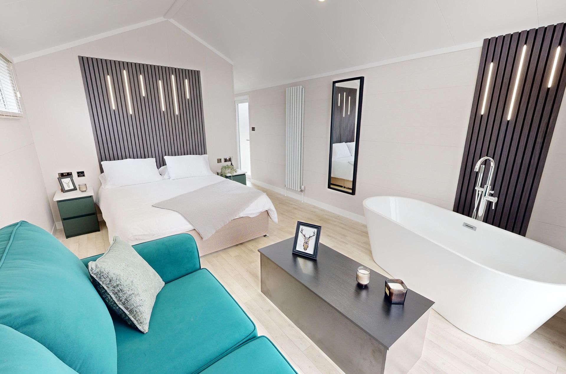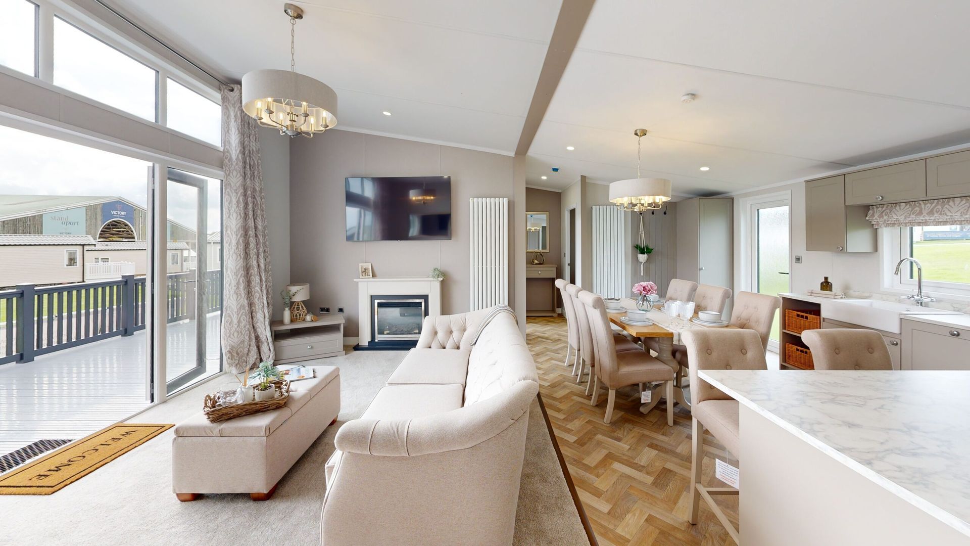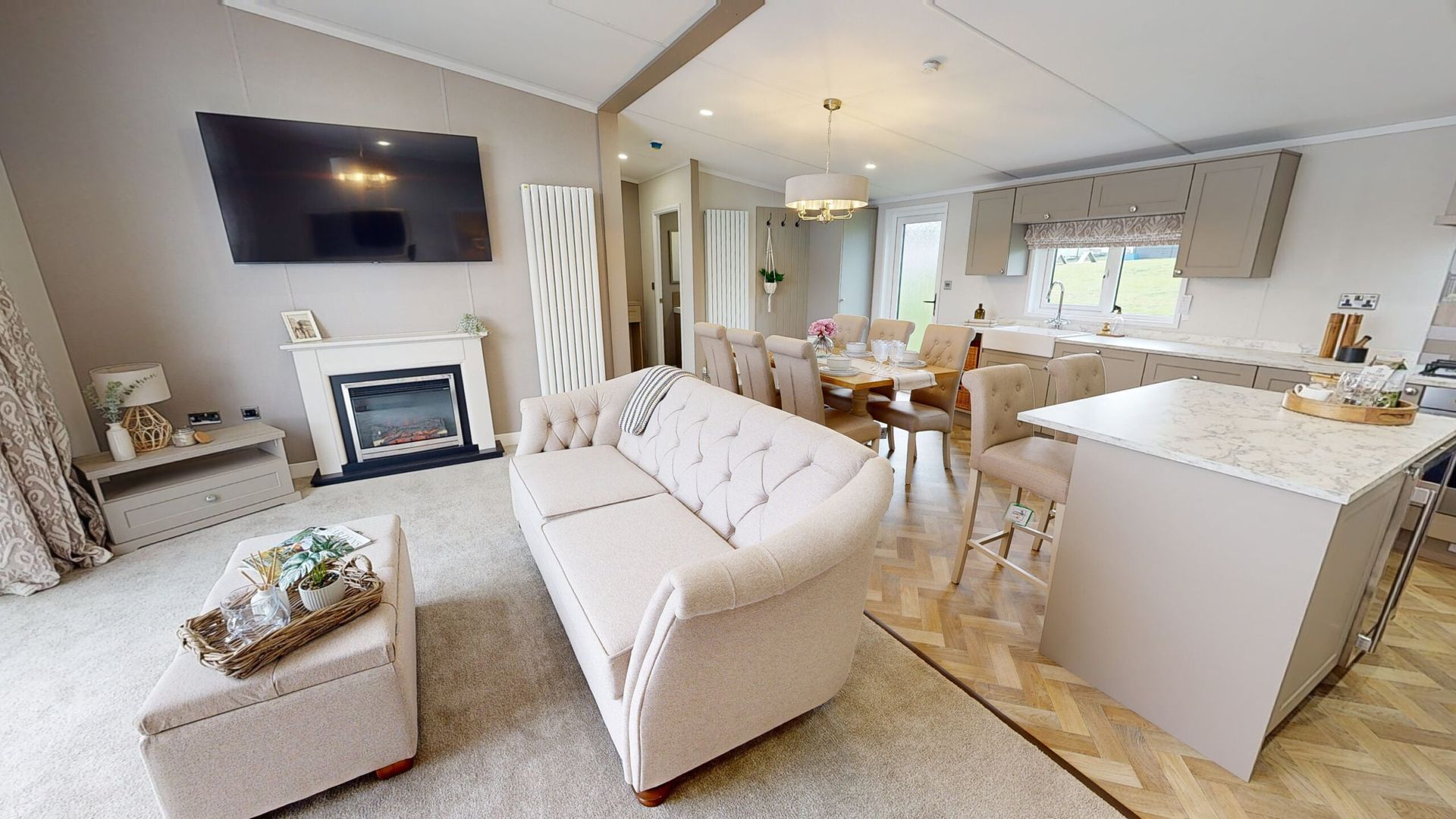 Jura is available in a 43 x 14 layout with 2 bedrooms. The lodge includes a large kitchen/diner and family living space. A large family bath, shower and master bedroom with ensuite along with twin bedroom.