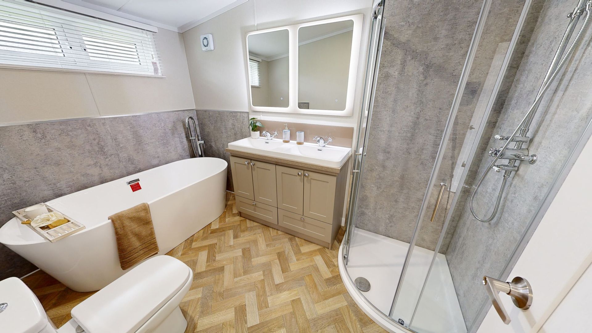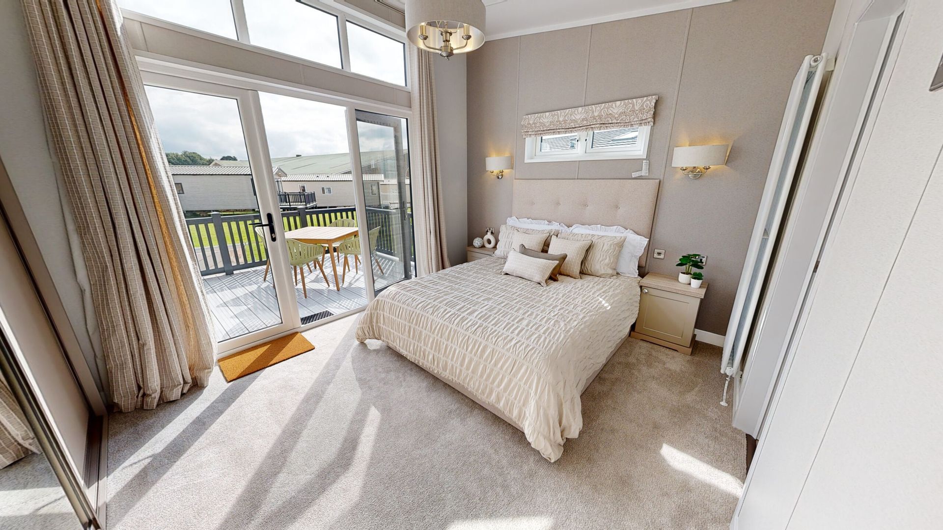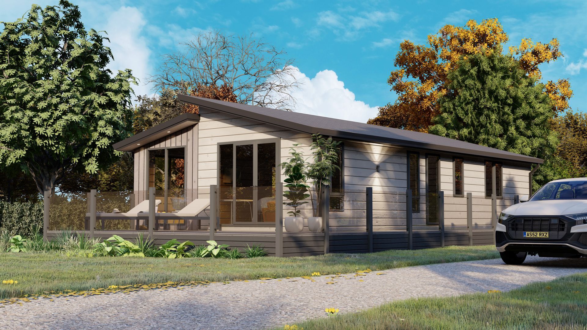 Jura is available in a 43 x 14 layout with 2 bedrooms. The lodge includes a large kitchen/diner and family living space. A large family bath, shower and master bedroom with ensuite along with twin bedroom.