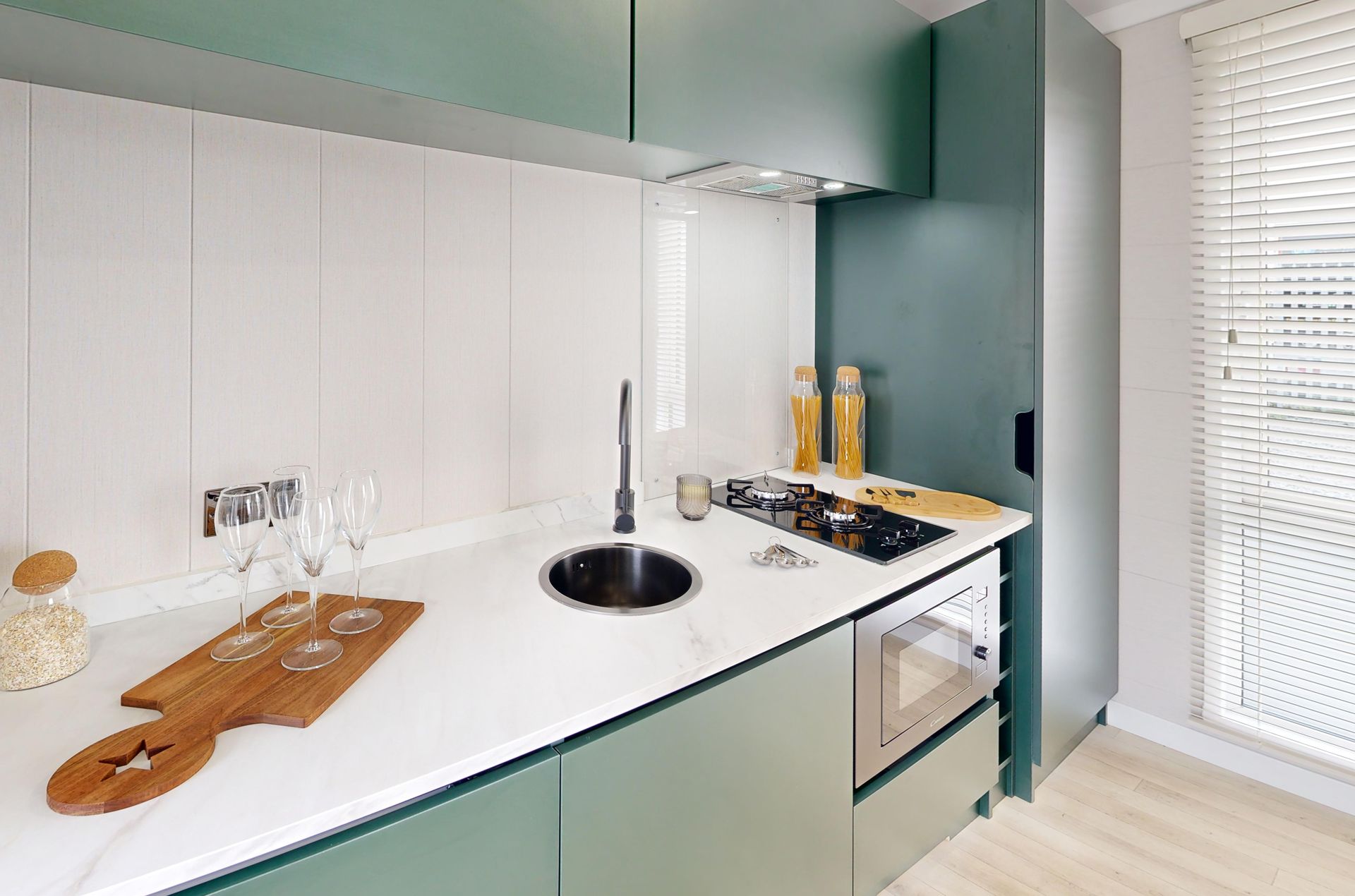 - Integrated microwave and integrated wine cooler