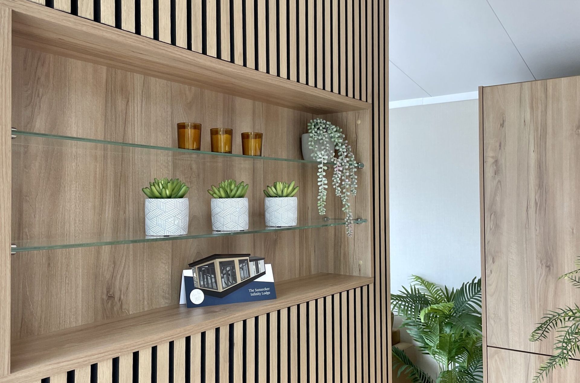 - Vertical centre console with feature fire and TV unit